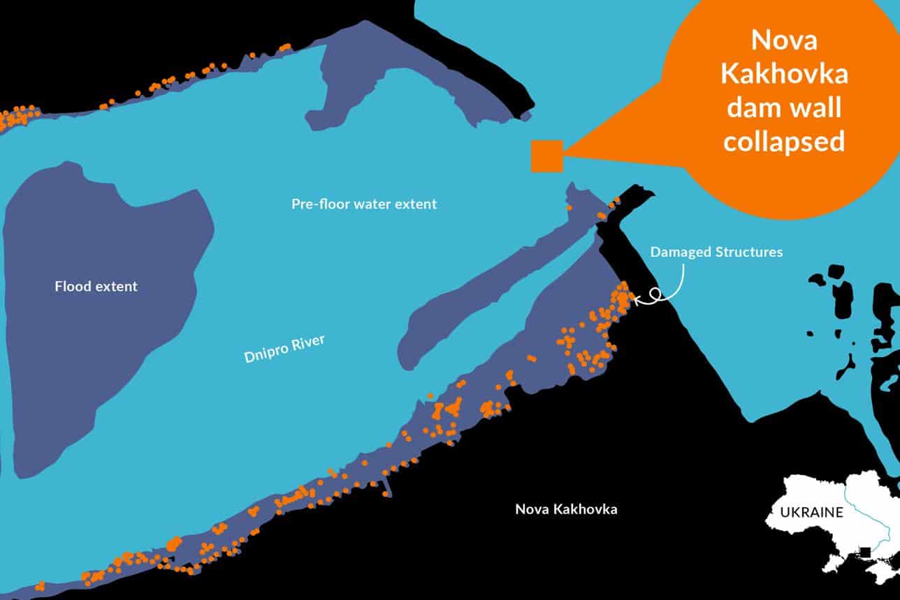 The dam's destruction on June 6, 2023, led to a rapid drop in reservoir levels (from 16.4m to 9.04m in 5 days)[cite: 81].